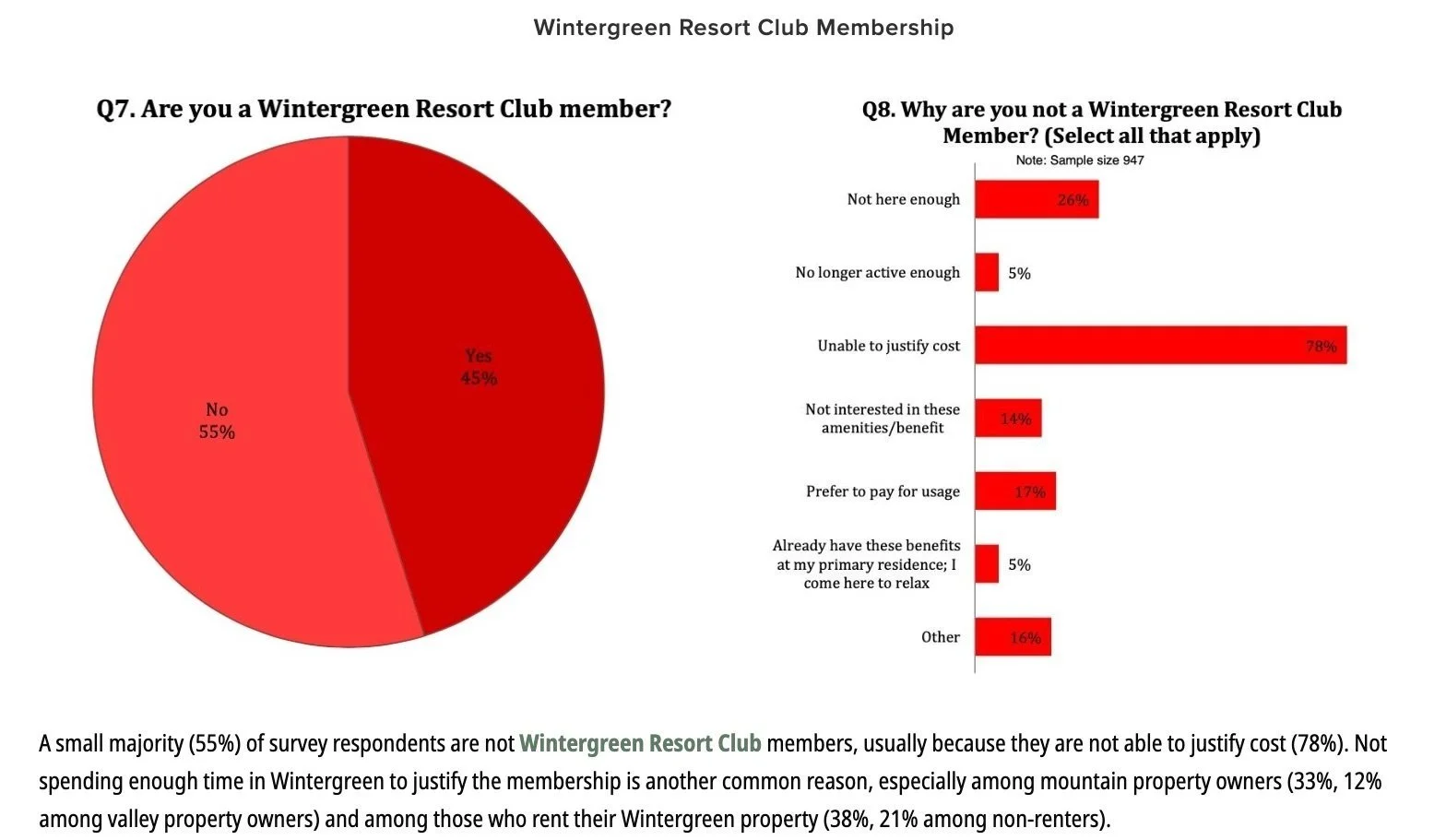 Some 78 percent of Wintergreen property owners who do not belong to the resort’s Wintergreen Club said the reason they didn’t belong was that they were “unable to justify the cost.”