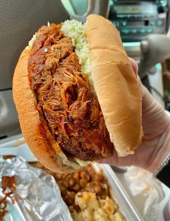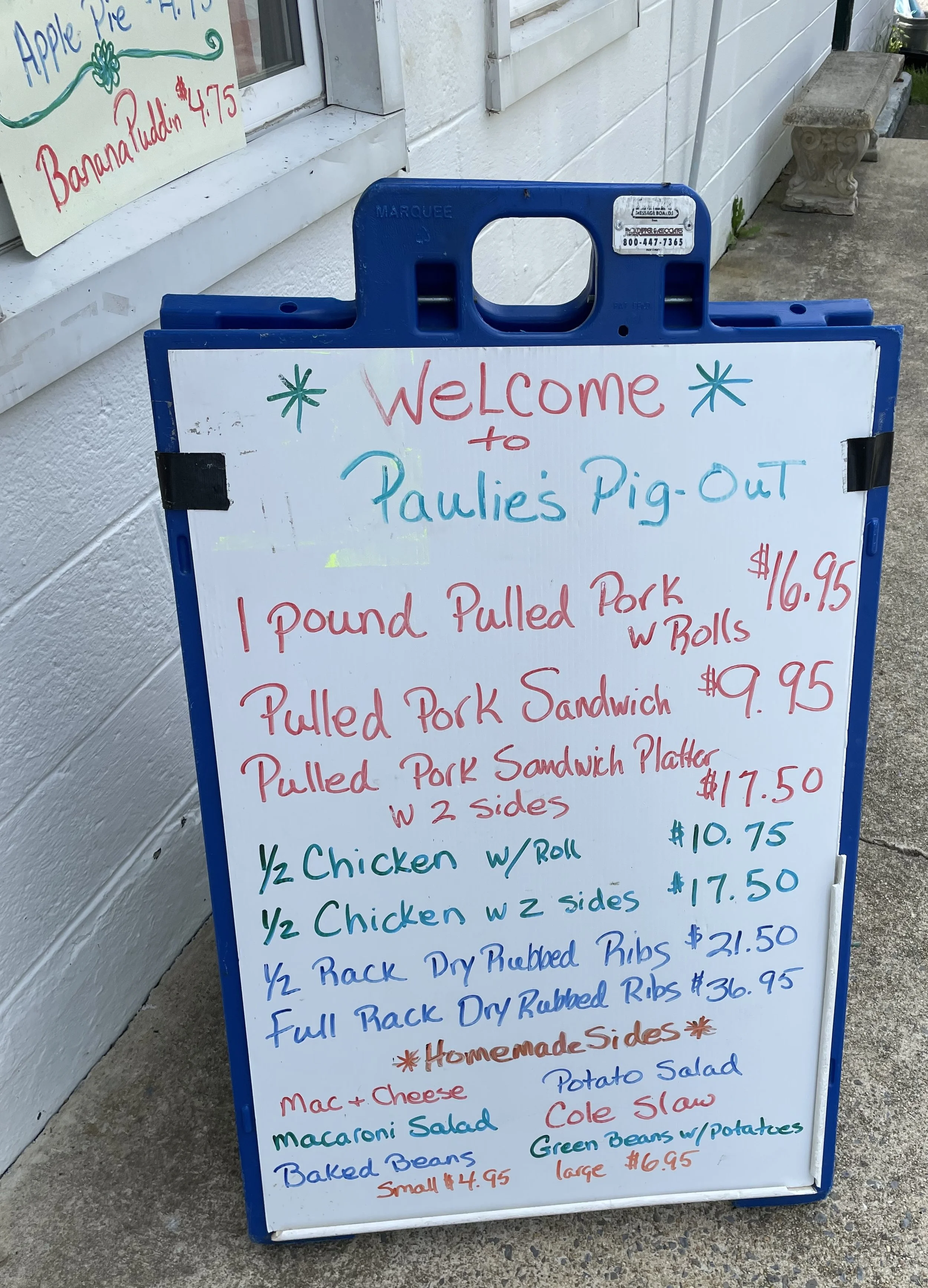 Paulie’s Pig-Out is the cinder-block building on Route 151 with two cookers on the side of the road.