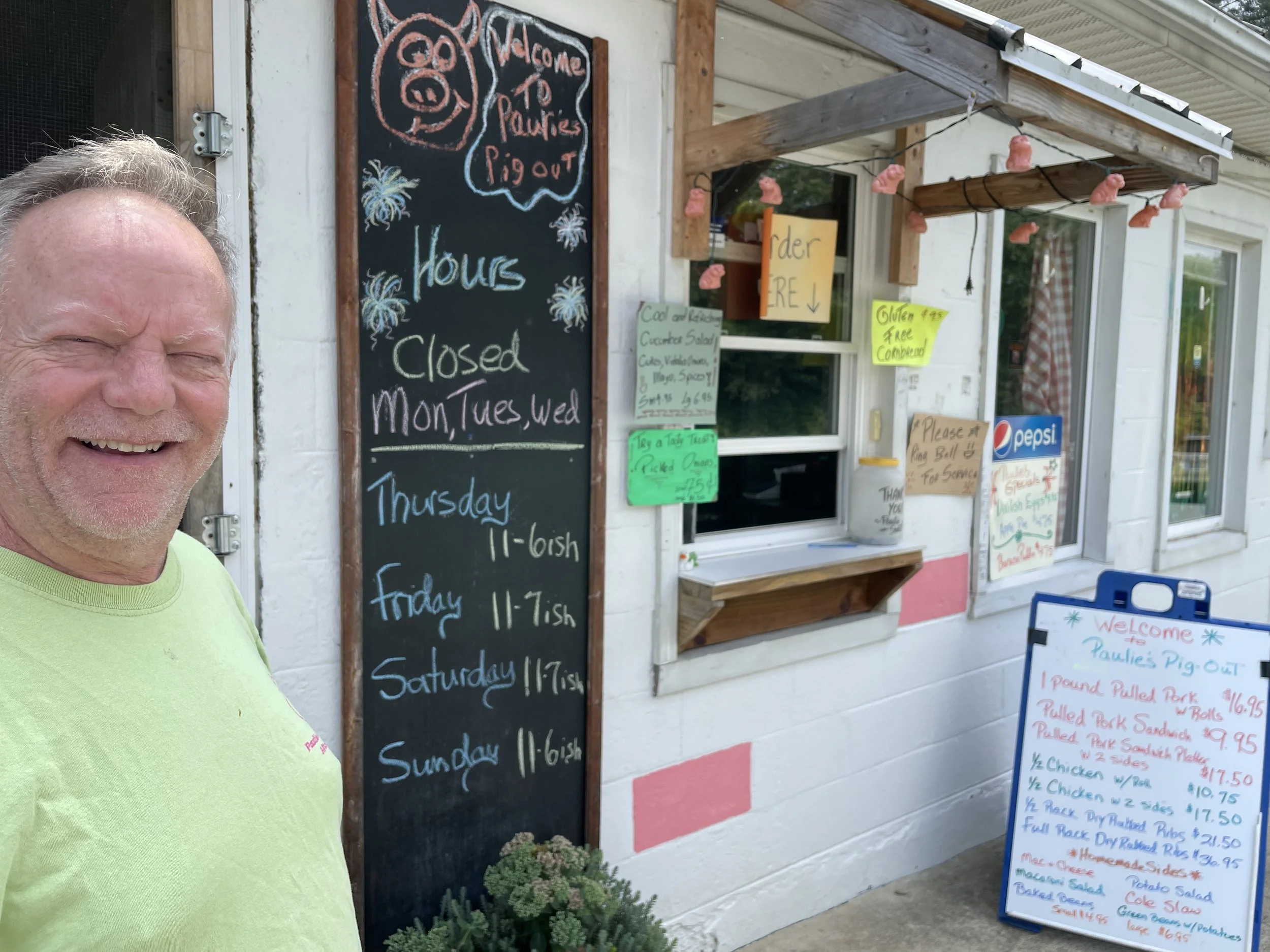 Paulie’s Pig-Out owner Paul Matheny with his current hours of operation.