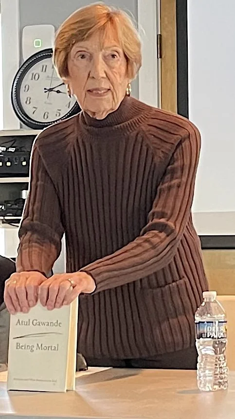Linda Harrington, HSW’s president, opened the meeting by pointing to the book Being Mortal by Arul Gawande, just as Kaye Pietrowicz did at the 2019 standing-room-only meeting about “aging in place” that launched the organization.