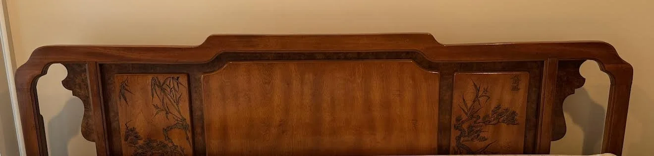 King Size Headboard (42H x 76.5L x 1W) with Bed Frame (71 L) and Tempurpedic Box Mattress (80L) $250. (See bed in mirror above.)